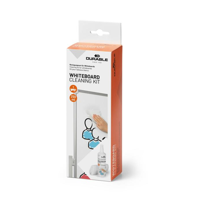 Na čistenie a dlhotrvajúcu starostlivosť o povrchy bielych tabúľ Vhodné pre popisovače na biele tabule, ktoré sa dajú zotrieť nasucho Obsah: 250 ml sprej s pumpičkou, kvalitná handrička z mikrovlákna 25 x 25 cm