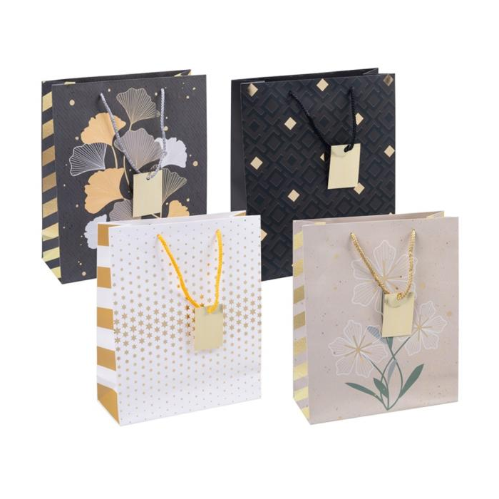 Darčeková taška DONAU HOME: - ideálna na balenie darčekov - rôzne dizajny vám umožňujú zladiť ju s každou príležitosťou - od narodenín až po sviatky a výročia - vďaka laminovanému, matnému povrchu sa vyznačuje väčšou odolnosťou voči poškodeniu a dlhodobo si zachováva elegantný vzhľad - vyrobená z papiera s gramážou 210 g/m² - pevná šnúrková rukoväť z polypropylénu zaisťuje pohodlné nosenie - s visačkou 5 x7 cm, ktorú možno použiť ako miesto na venovanie - rozmery: 25 x 30 x10 cm