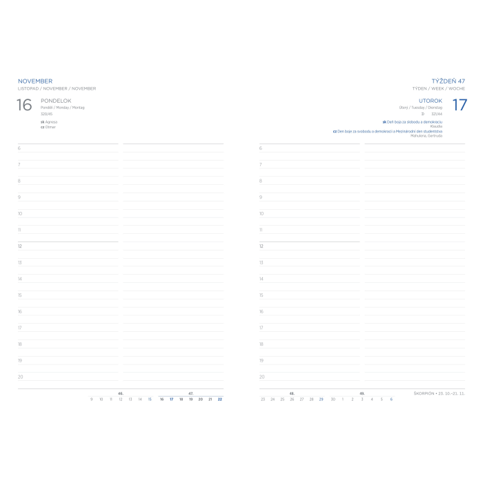 Formát: A5, 148 x 210 mm, denný