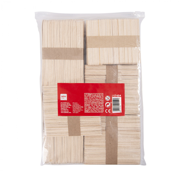 Drevené paličky v prírodnej farbe. Každé vrecko obsahuje 800 drevených paličiek v rôznych veľkostiach: 150 x 18 mm (200 kusov), 114 x 10 mm (300 kusov) a 92 x 9 mm (300 kusov). MAXI formát, ideálne pre školy a skupiny. Veľmi odolné, ľahko sa lepia, maľujú a dokonca aj režú. Základný produkt pre školy a detské dielne, ideálny na vytváranie dekorácií, stavebných konštrukcií, bábok, modelov alebo na použitie v iných ručných prácach. Ideálne na stimuláciu detskej fantázie a kreativity.