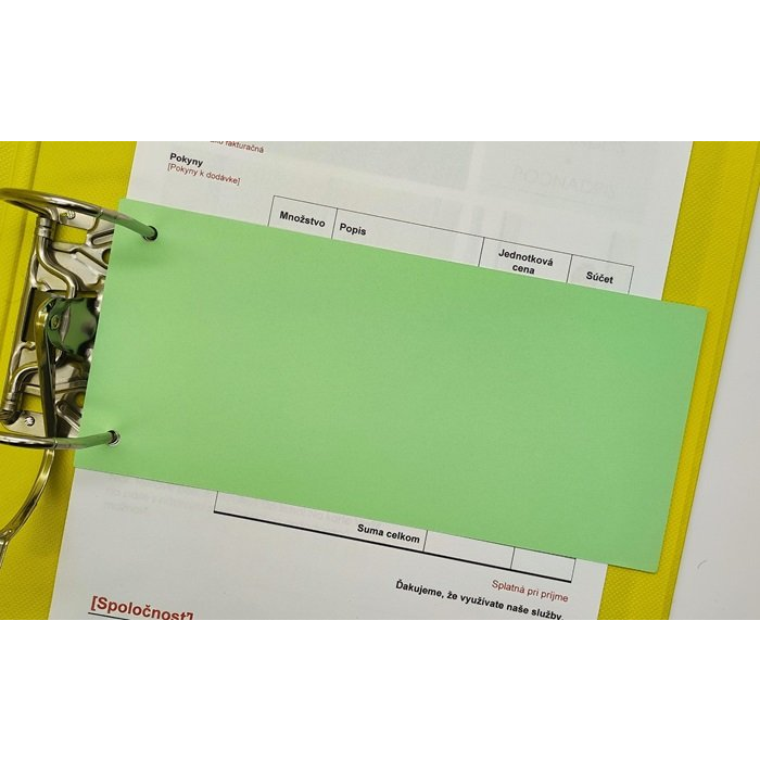 Kartónový rozraďovač je vhodný na rozdelenie dokumentov v pákových zakladačoch. Rozraďovač je vyrobený zo zeleného 160g papiera.Rozmer 230x105mm, balenie obsahuje 50ks. Vyber si na eshope www.kancelarske-potreby-online.sk kartónový rozraďovač, online papierníctvo ti ponúka všetko čo potrebuješ do kancelárie, skvelé a lacné kancelárske potreby a lacné papierníctvo.