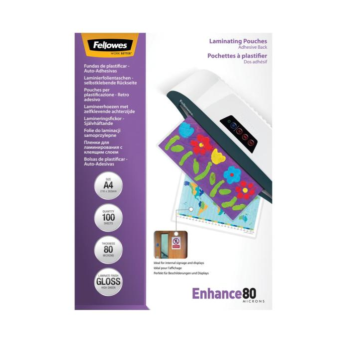 Samolepiaca laminovacia fólia vytvára laminovanému dokumentu exkluzívny lesklý povrch. Po zalaminovaní fólie v laminátore sa zadná zelená ochranná fólia stiahne a dokument sa môže prilepiť na akýkoľvek povrch. Formát A4. Povrch lesklý. Hrúbka 80 mikrónov. Balenie 100 ks.