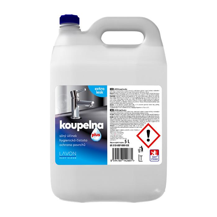 Lavon kúpeľňa je čistič kúpeľní, ktorý rýchlo a ľahko odstráni hrdzu, vodný kameň, mydlové aj mastné nečistoty z vodovodných batérií, sanity, sprchových zásten a obkladov. Obsahuje špeciálnu antikorozívnu látku a kyselinu mliečnu, ktorá obmedzuje výskyt baktérií. Čistené povrchy chránia, zanecháva ich hygienicky čisté, lesklé a bez zaschnutých kvapiek.