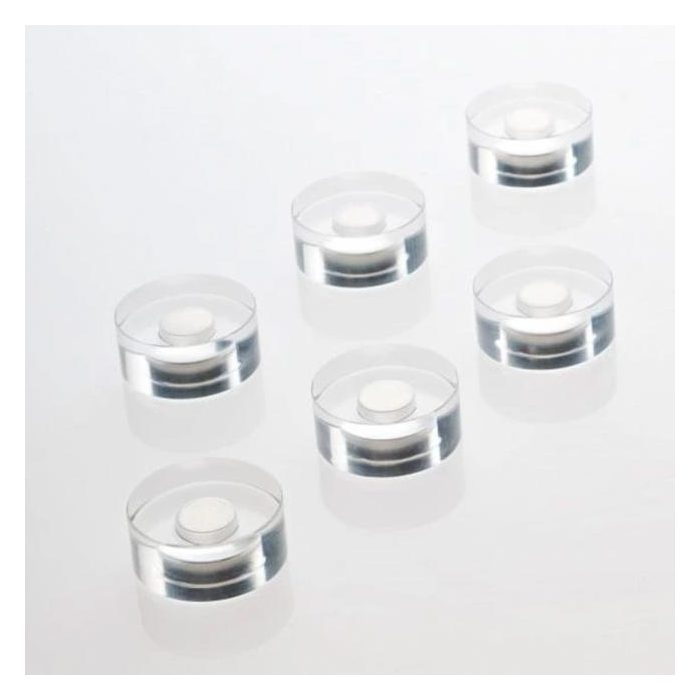 Dizajnový magnet Magnetoplan Acryl s neodymovým extra silným jadrom. Prídržná sila cca 2,5 kg. Priemer 25 mm. Hrúbka 11 mm. Známka ochrany priemyselného designu.