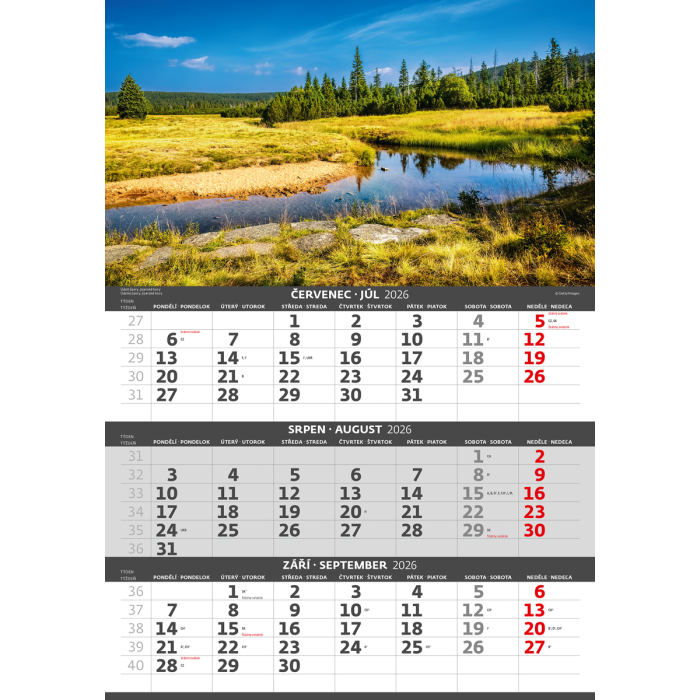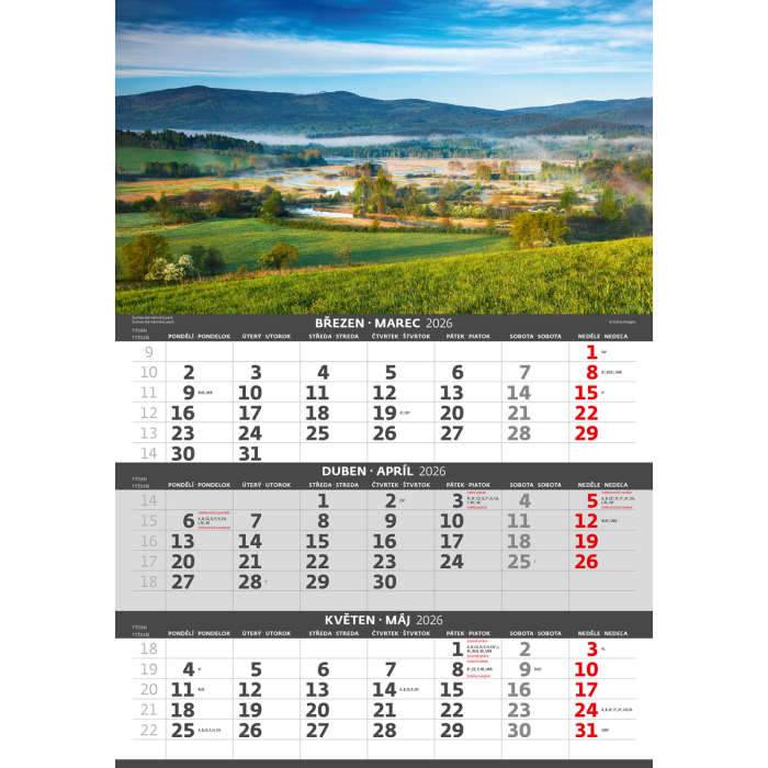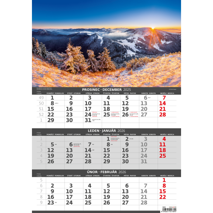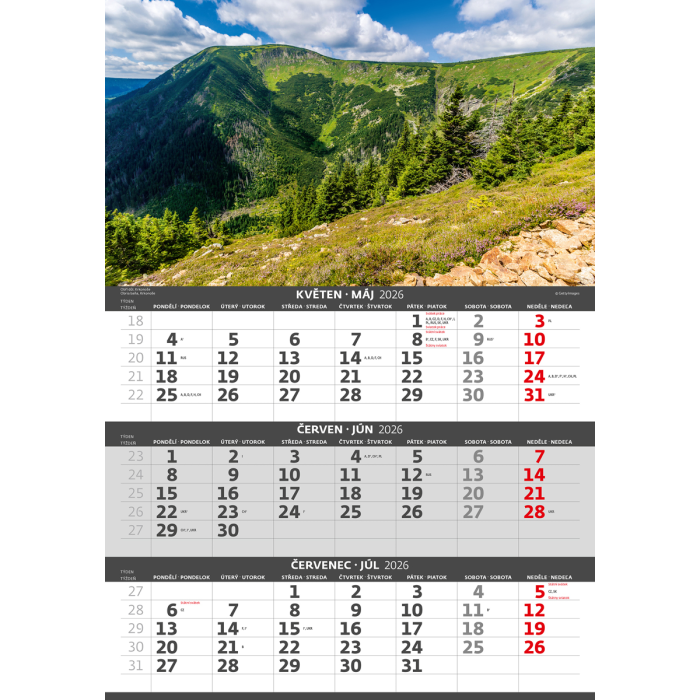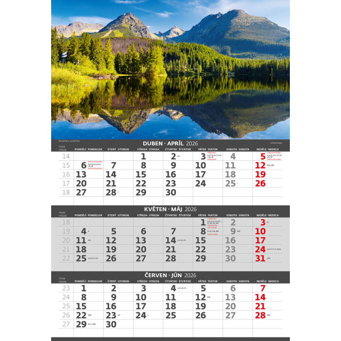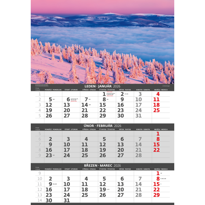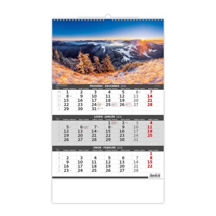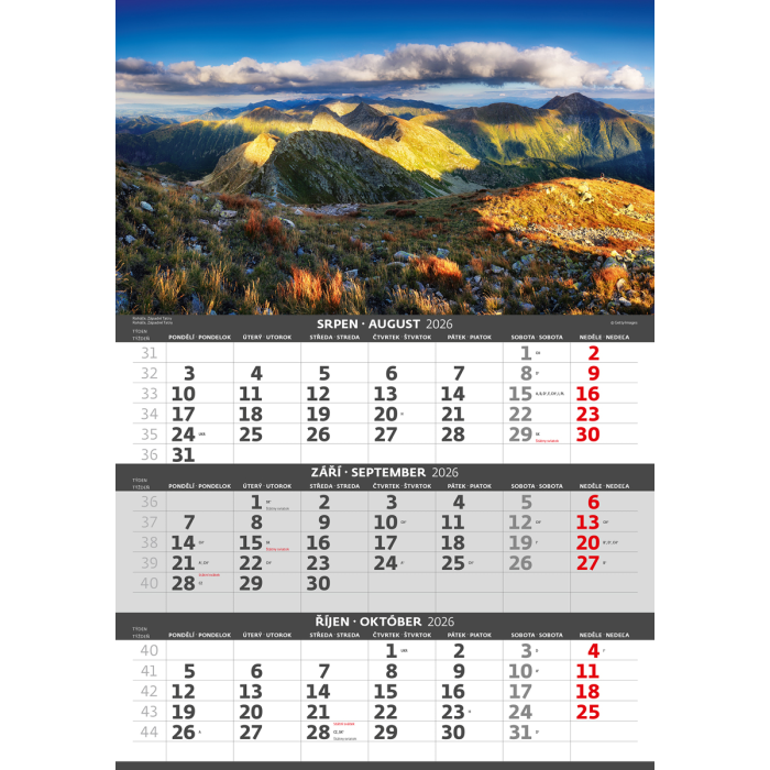 Nástenný kalendár 3-mesačný Hory 31,5 x 45 cm 2026