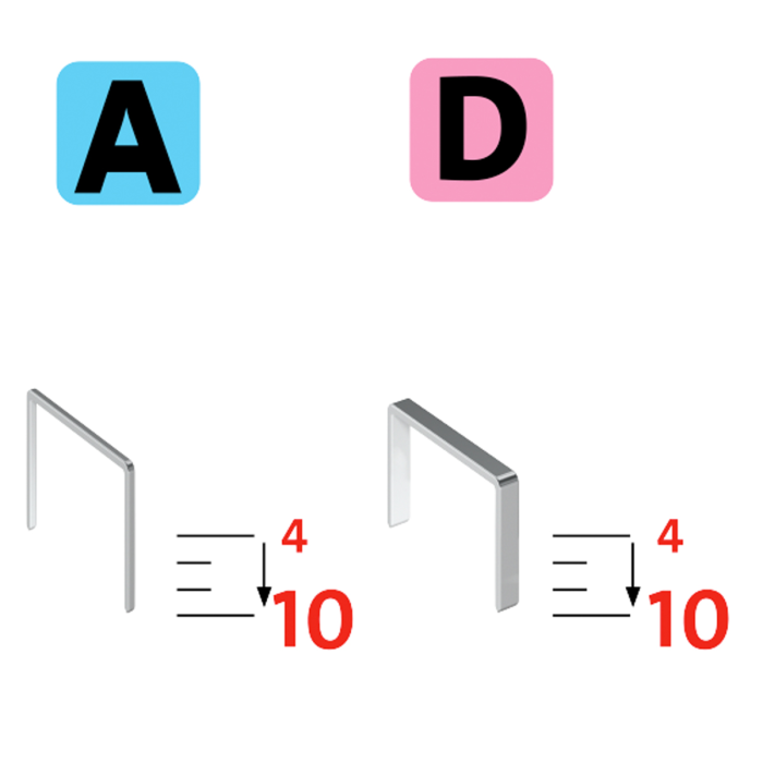 Malá profesionálna nastreľovačka s nízkym spätným nárazom s krytom zo zinkového odliatku pre rozličné práce v profesionálnych aplikáciách pre domácich majstrov a pre dielne. Posuvný mechanizmus na ľahké prepínanie medzi tenkými spinkam a spinkami z plochého drôtu, ergonomická mäkká rukoväť, spodný plniaci zásobník s bezpečnostnou poistkou na ľahké plnenie spinkami, zámok rukoväte pre skladovanie, kontrolné okienko na sledovanie stavu naplnenia zásobníka. Kapacita: (A) spinky 150 ks, (D) spinky 85 ks.
