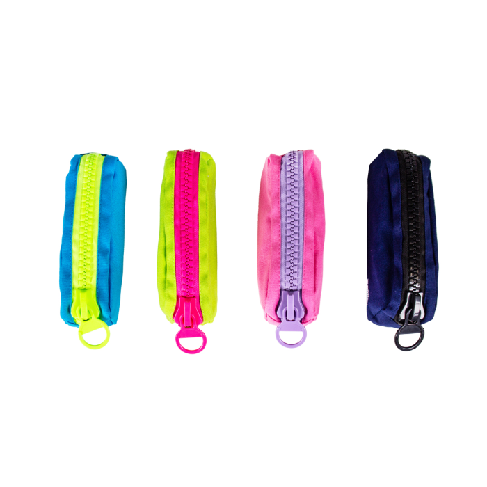 Puzdro na perá má rozmery 20 × 7 × 8 cm a vyznačuje sa výrazným nadrozmerným zipsom. Je vyrobený z odolného plátna zvonku a podšitý polyesterom zvnútra, takže ponúka dostatok miesta na perá, gumy a malé písacie potreby. Je dostupný v rôznych farbách, je praktický, šikovný a ideálny do školy alebo kancelárie.