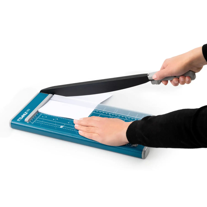 Kompaktná, protišmyková a robustná rezačka, nôž z lisovaného oceľového plechu zabezpečuje bezpečné rezanie aj bez krytu.