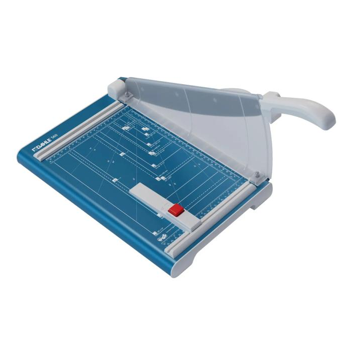 Páková rezačka z pevného oceľového plechu. Základný vrchný a základný spodný brúsený nôž vyrobený z kvalitnej nožiarskej ocele Solingen, priehľadný ochranný kryt ostria, ručný prítlak, zadný doraz. Formátovacie čiary na stole pre lepšie zarovnanie materiálov s praktickou mm stupnicou pozdĺž reznej hrany. Pohodlná práca vďaka ergonomickej rukoväti optimalizovanej pre prenos sily zhora. Presná mierka v cm/inch a DIN formátoch, na spodnej časti výrezy na pohodlné prenášanie.