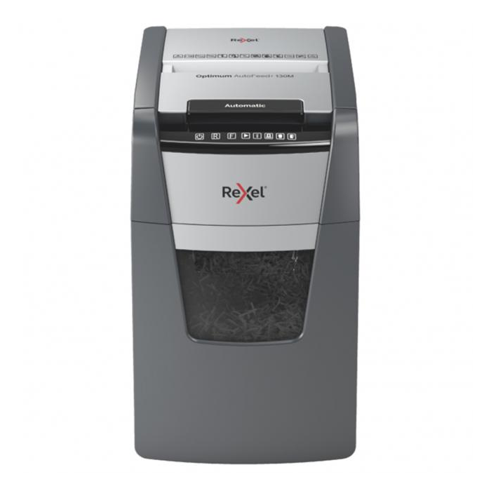 Skartovačka Optimum AutoFeed 130M automaticky skartuje až 130 hárkov papiera A4 (80 g/m2) mikrorezom P-5 (2 × 15 mm). Táto skartovačka s automatickým podávaním je sofistikovaný kancelársky drvič s výsuvným košom s objemom 44 l. Nie je potrebné ručne vkladať papier alebo vopred odstraňovať svorky a kancelárske sponky, táto automatická skartovačka papiera urobí všetko za vás.