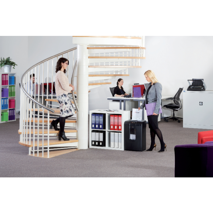 Bez uviaznutia, bez ťažkostí, bez neporiadku! Skartovačka RSX1834 s technológiou Mercury™ Jam Free s nepretržitým snímaním skartuje až 18 listov (80 g/m2) na krížovo rozrezané čiastočky 4 × 40 mm (utajenie typ 4). Má odpadový kôš s objemom 34 litrov.