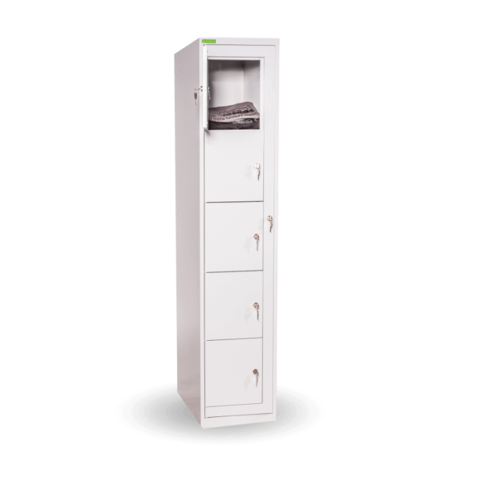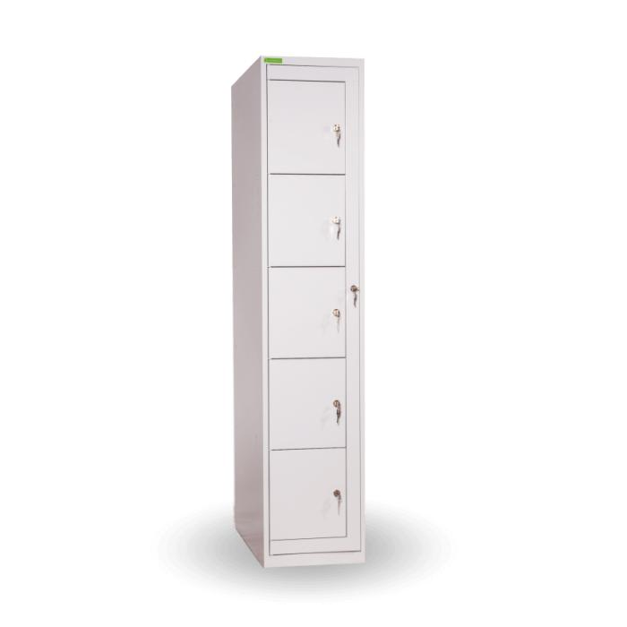 Skriňa na výdaj pracovného oblečenia s 5 priehradkami, uzamykateľná, v.182 x š.38 x h.45cm, RAL7035 sivá