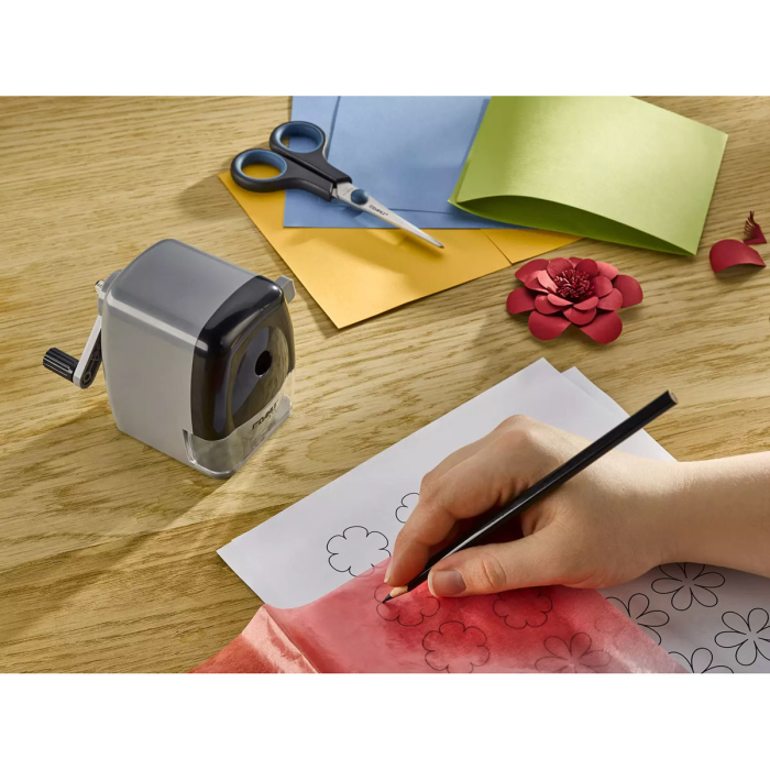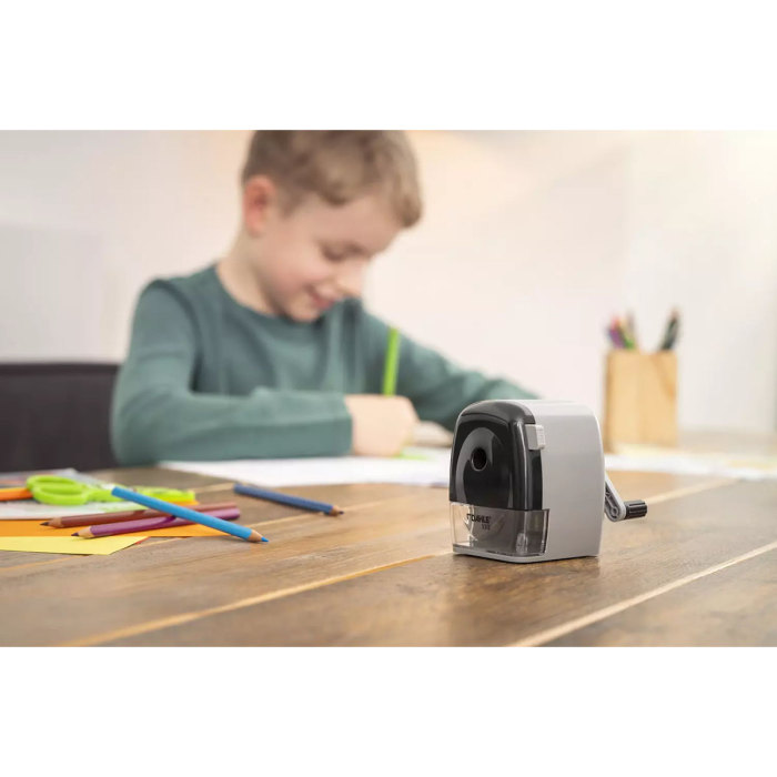 Kvalitné značkové strúhadlo z plastu na tuhy a ceruzky priemeru do 11,5 mm v atraktívnom dizajne s automatickým prichytením ceruzky pri strúhaní a jej automatickým uvoľnením po zastrúhaní. Kovová objímka prítlaku zabezpečuje dlhú životnosť.