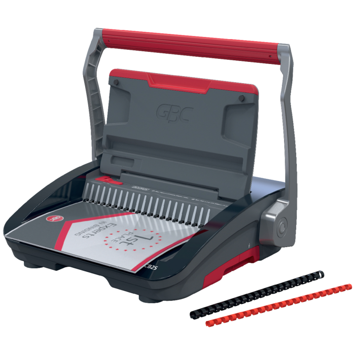 • spoľahlivý a kompaktný ručný viazač s plastovými chrbtami, navrhnutý na zdieľané použitie v kancelárskom a školskom prostredí s bežnými nárokmi na objem väzby