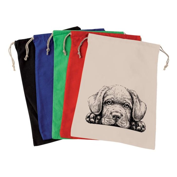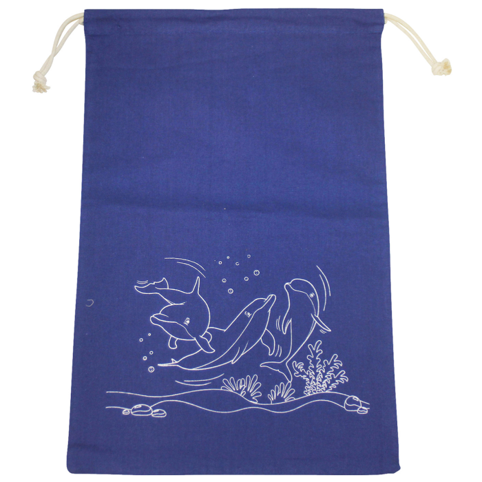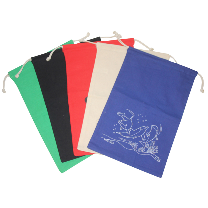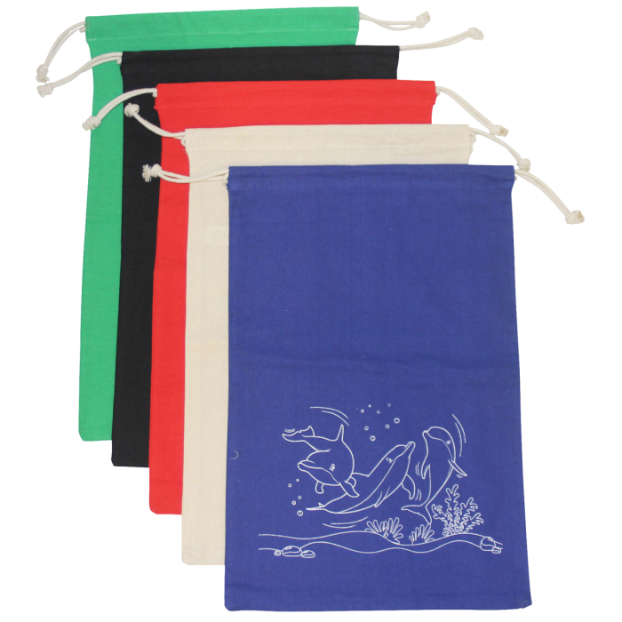 Školská športová taška s potlačou zvieratiek a menovkou, 5 rôznych farieb/vzorov, materiál bavlna a bavlnené šnúrky.