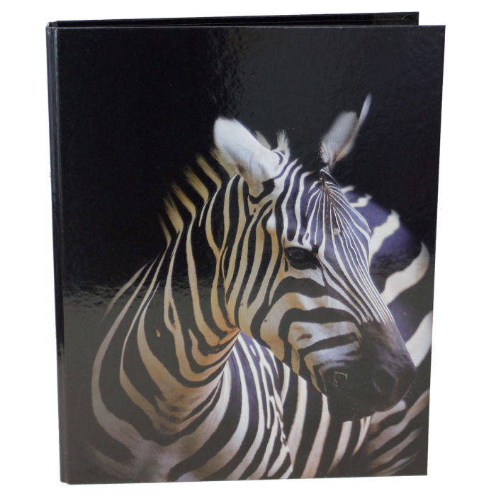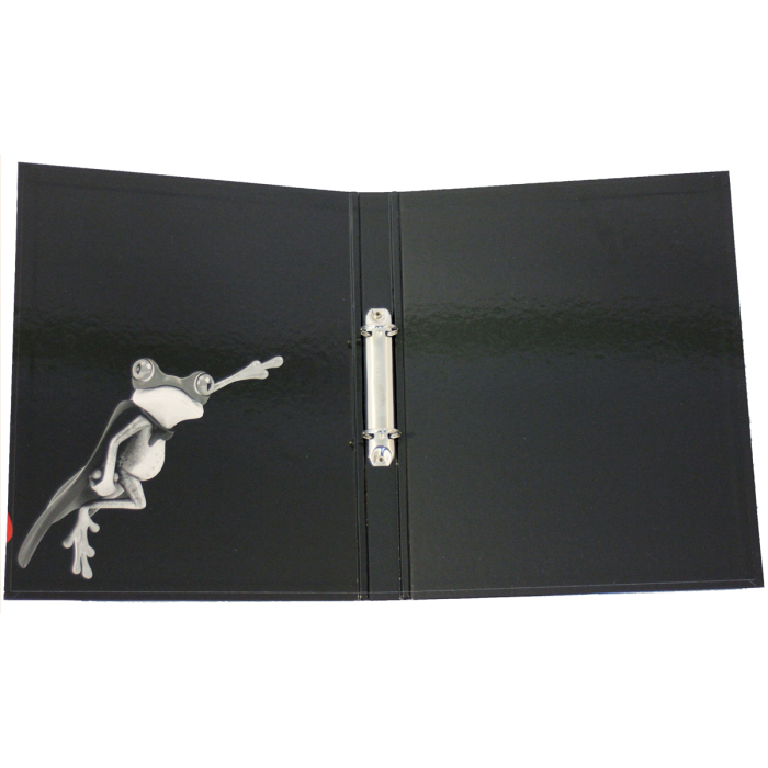 Zakladač krúžkový, 5 rôznych vzorov zvierat (2 z každého), vo vnútri s čirnobielou potlačou, pre formát DIN A4, 2 krúžky, priemer krúžku 25 mm, lesklý laminovaný papierový povrch.