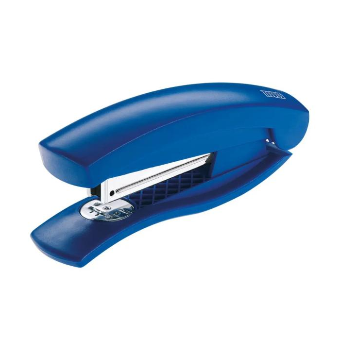 Kancelárska zošívačka na stôl aj do ruky v modernom dizajne. Zásobník spiniek s plastovým osadením a jednoduchým vedením spiniek. Kapacita náplne 100 spiniek 24/ 6 alebo 26/ 6. Hĺbka zošívania 6,5 cm. Hmotnosť 140 g. Farba: modrá Kapacita listov: 15 Hĺbka zošívania: 6,5 cm